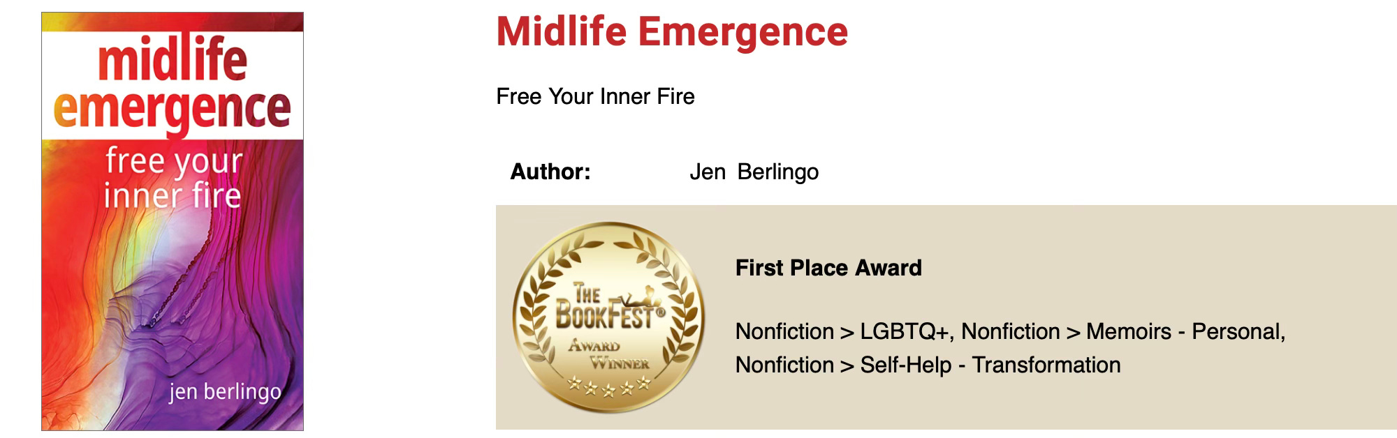 thrilled about: My book earning a first place award from BookFest in three, fun, non-fiction categories: LGBTQ+, personal memoir, and transformative self-help