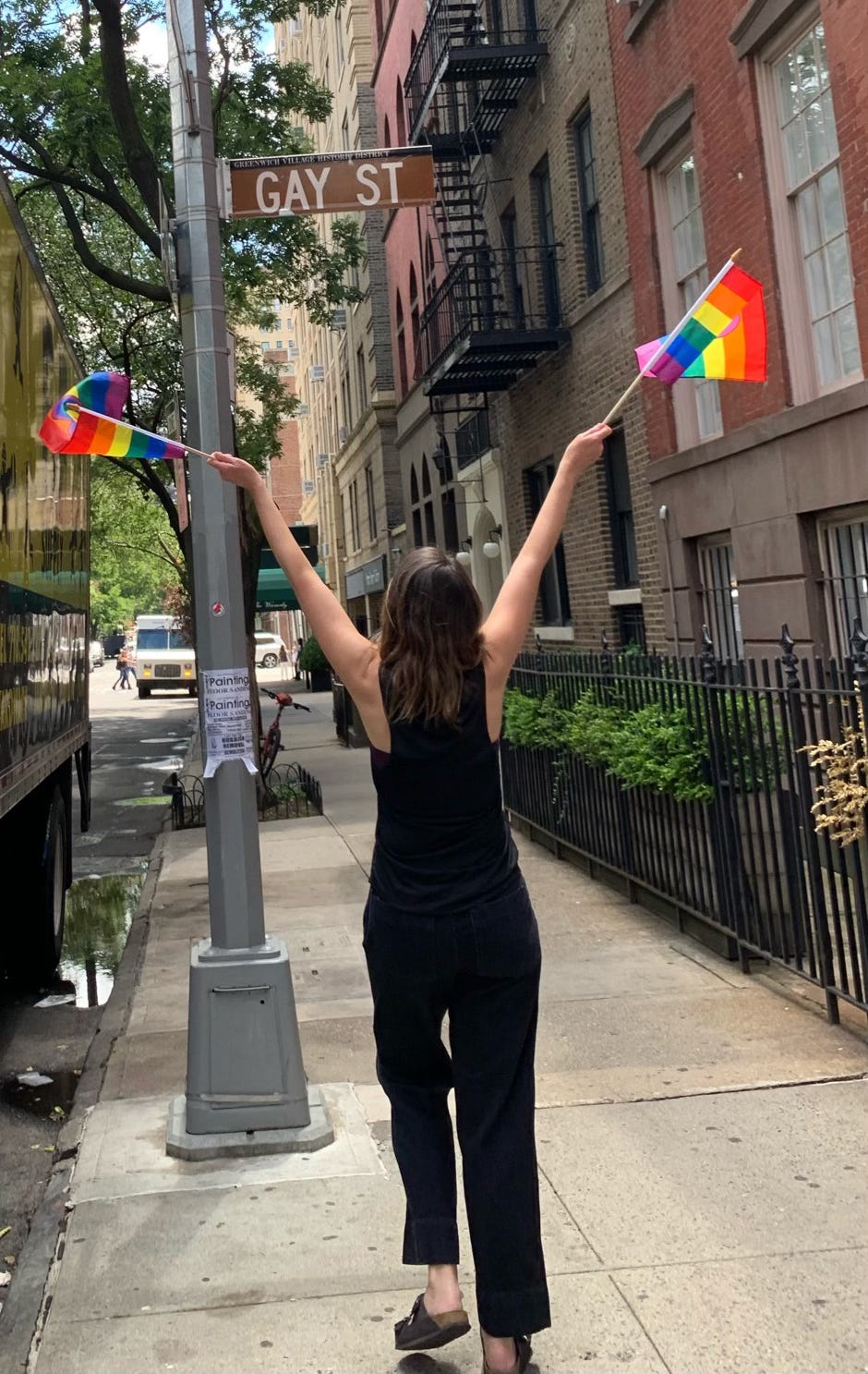 After I moved into my own place in June of 2020, in the early pandemic days, I’d walk into my new closet and see all the gorgeous maxi-dresses I’d collected over time, and I’d feel a disconnect in my body. I’d wonder “who was she?!” Since I didn’t have to go anywhere while working from home, I’d just grab the sweatpants and go about my day. I pause to consider if I want to curl my hair or apply lipstick. Now, as I’m moving out into the world, I’m faced with this idea of costume. I’m inspired by the flexibility and openness of those coming up after us (the millennials and GenZ), and I pay great respect to the elder-queers who paved the way for us and those younger to express as freely as we can now.