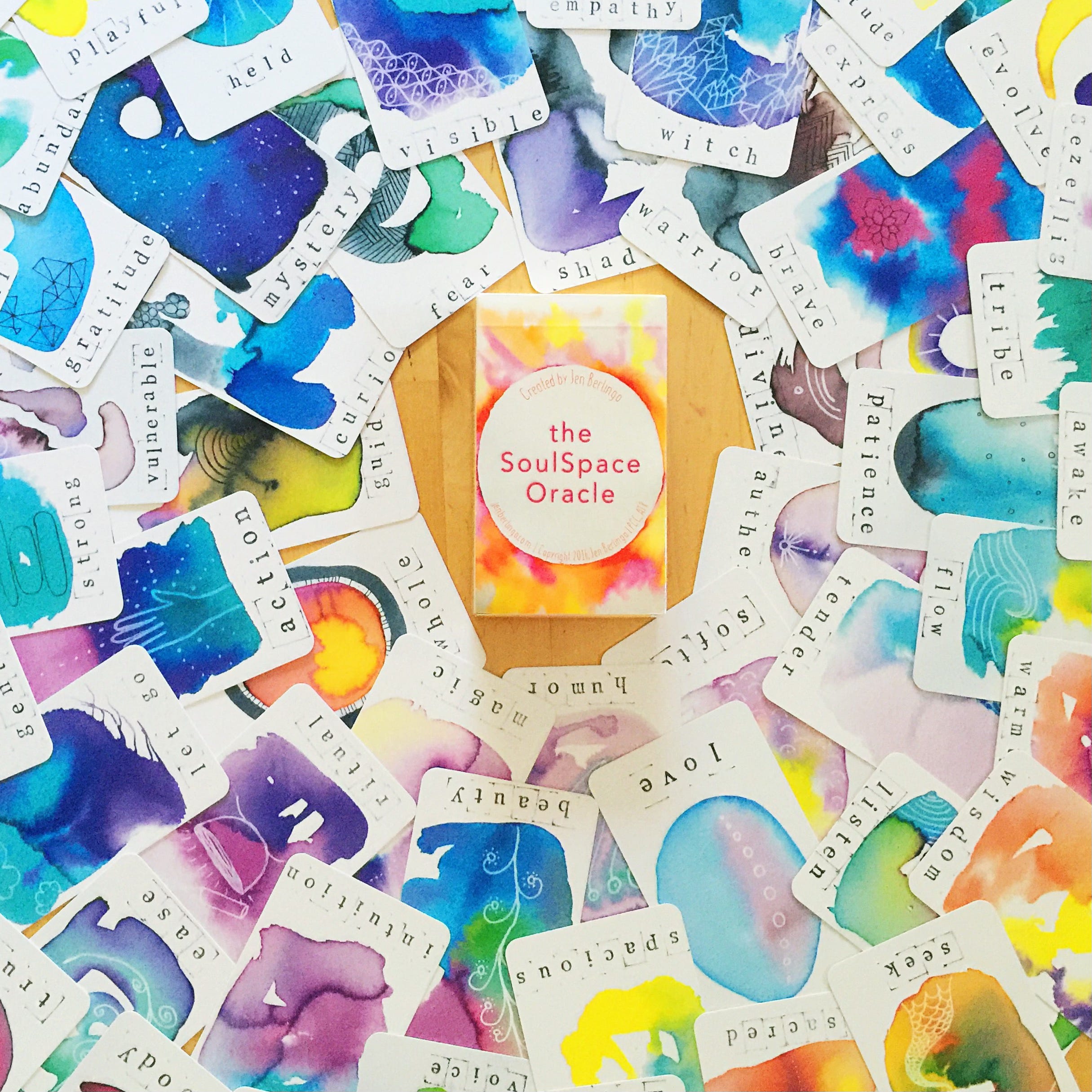 My 60-card deck has been for sale in my Etsy shop ever since. I’ve also offered it wholesale in a few brick and mortar locations over the years. It’s not something I very actively promote. Even so, it has taken on its own life, as I have shipped decks to over 700 cities in 30 countries in the past 8+ years on a weekly basis. I love seeing images of The SoulSpace Oracle pop up on social media (mostly Instagram and YouTube) when people share using the hashtag #SoulSpaceOracle. (You can click that to see images from deck keepers worldwide.) The deck has earned consistent 5-star reviews, and I love hearing from customers about their experiences with it. Here are a handful of heartwarming reviews: